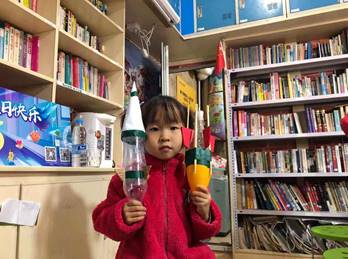 在做水火箭的过程中,志愿者们带领孩子们走出屋门,孩子们蹦蹦跳跳地期待实验。