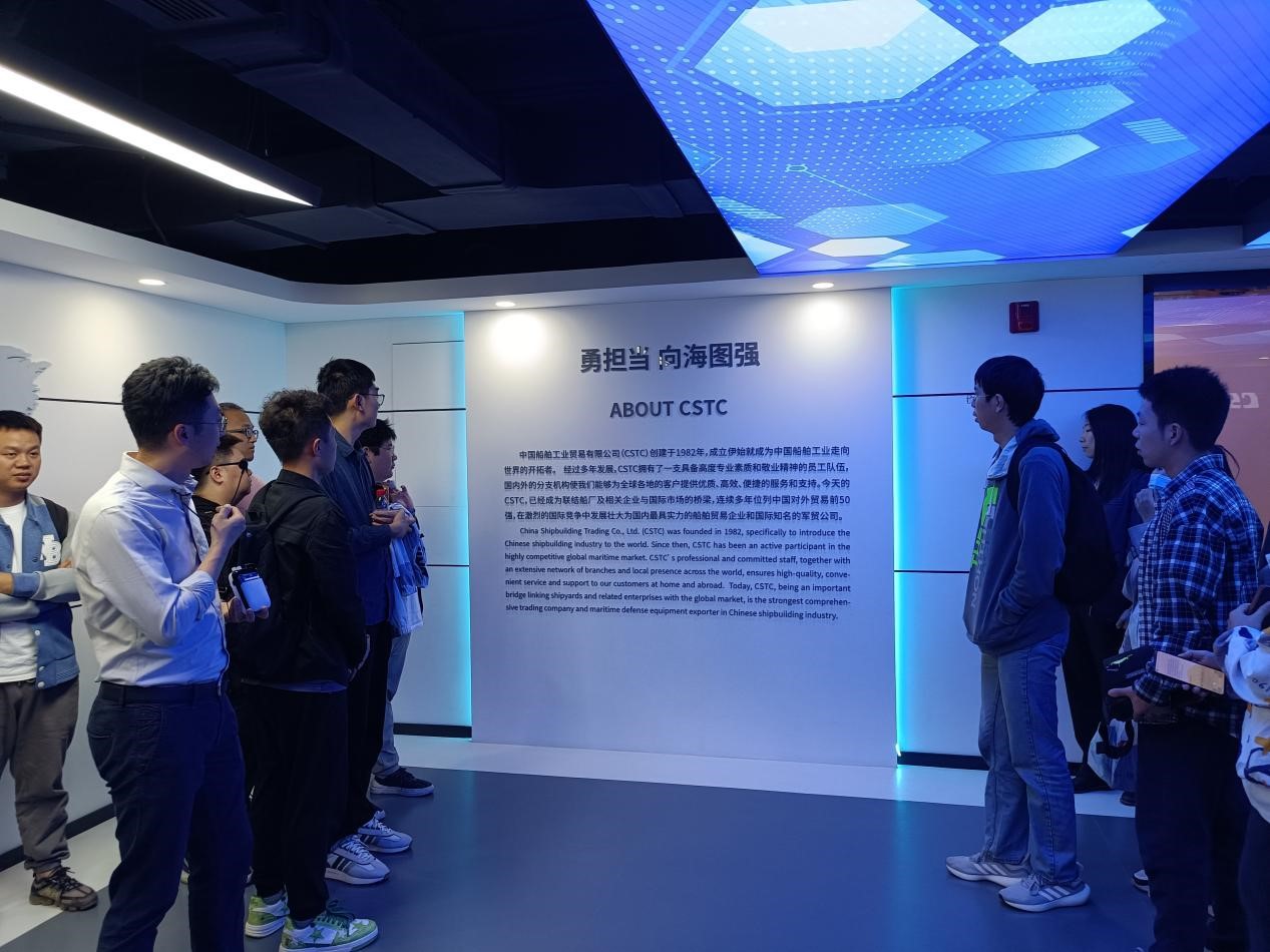 交流会后,公司员工带领同学们参观了公司展厅,介绍公司的相关业务情况。同学们听得津津有味,热血沸腾,并对国家的船舶事业充满憧憬。最后,部分同学和公司招聘人员进行深度交流,进一步了解公司情况并投递简历。同学们表示深受鼓舞,对船舶事业和未来规划有了更清晰的认识,开阔了视野,明确了努力的方向。
