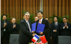 2013年3月6日,我校中法工程师学院与法国道达尔集团(Total)共同签署了新一期的办学合作协议。法国道达尔集团招聘、职业与多元化发展副总裁LAURENCESTORELLI女士,道达尔中国大区人事主管Michele TERMINET-SCHUPPON、中法工程师学院领导出席签字仪式