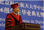 2013年1月12日上午,我校中法工程师学院2006级学生毕业典礼暨学位授予仪式在新主楼第二报告厅举行。法国驻华大使白林(Sylvie-AgnèsBERMANN),我校校长怀进鹏院士,南特中央理工大学校长普瓦度(Arnaud POITOU),中国商飞公司党委委员、总经理助理、人力资源部部长燕桦,赛峰集团全球人事副总裁巴侯(Marc Parrot)等出席典礼